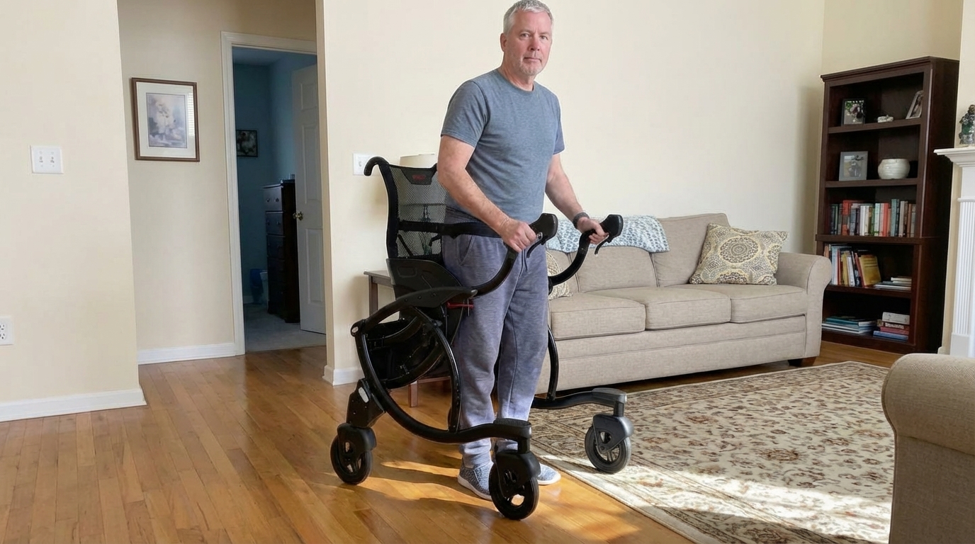 Unlike traditional walkers or wheelchairs, Zeen helps users stay upright and mobile while providing controlled support and stability.